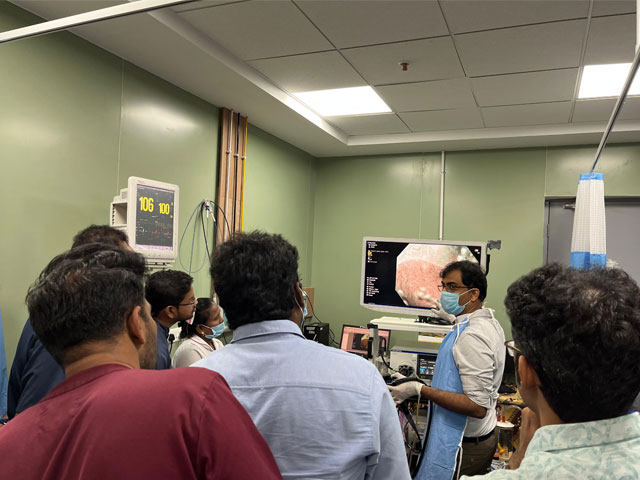 The department has an Endoscopy suite , library , Operation theatre, Labarotary , Auditorium ( capacity of 100 members with audio visual aid ) ,Clinical demonstration room, XRAY , Ultrasound and duty rooms for Residents . The department carries out around 6000 Upper Gastrointestinal Endoscopies yearly and 1500 colonoscopies yearly and a wide variety of therapeutic endoscopic interventions.